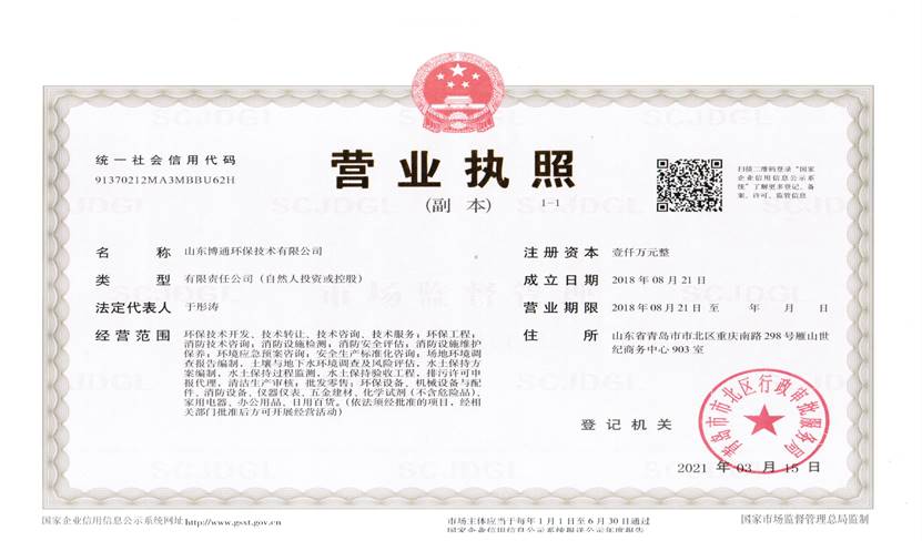 山東博通環(huán)保技術(shù)有限公司是一家專業(yè)從事環(huán)保、安全、消防的多元化技術(shù)服務(wù)公司,公司致力于打造專業(yè)的技術(shù)服務(wù)團(tuán)隊(duì),立足青島,輻射山東,服務(wù)范圍涵蓋:環(huán)保技術(shù)開發(fā)、技術(shù)轉(zhuǎn)讓、技術(shù)咨詢、技術(shù)服務(wù);環(huán)保工程;消防技術(shù)咨詢;消防設(shè)施檢測(cè);消防安全評(píng)估;消防設(shè)施維護(hù)保養(yǎng);環(huán)境應(yīng)急預(yù)案咨詢;安全生產(chǎn)標(biāo)準(zhǔn)化咨詢;場(chǎng)地環(huán)境調(diào)查報(bào)告編制,土壤與地下水環(huán)境調(diào)查及風(fēng)險(xiǎn)評(píng)估,水土保持方案編制,水土保持過程監(jiān)測(cè),水土保持驗(yàn)收工程,排污許可申報(bào)代理,清潔生產(chǎn)審核;批發(fā)零售:環(huán)保設(shè)備、機(jī)械設(shè)備與配件、消防設(shè)備、儀器儀表、五金建材、化學(xué)試劑(不含危險(xiǎn)品)。公司具有“建設(shè)手續(xù)一站式辦理,安環(huán)問題一條龍解決”的獨(dú)特優(yōu)勢(shì),可為客戶提供高效、優(yōu)質(zhì)的安全、環(huán)保、消防管家技術(shù)服務(wù)。